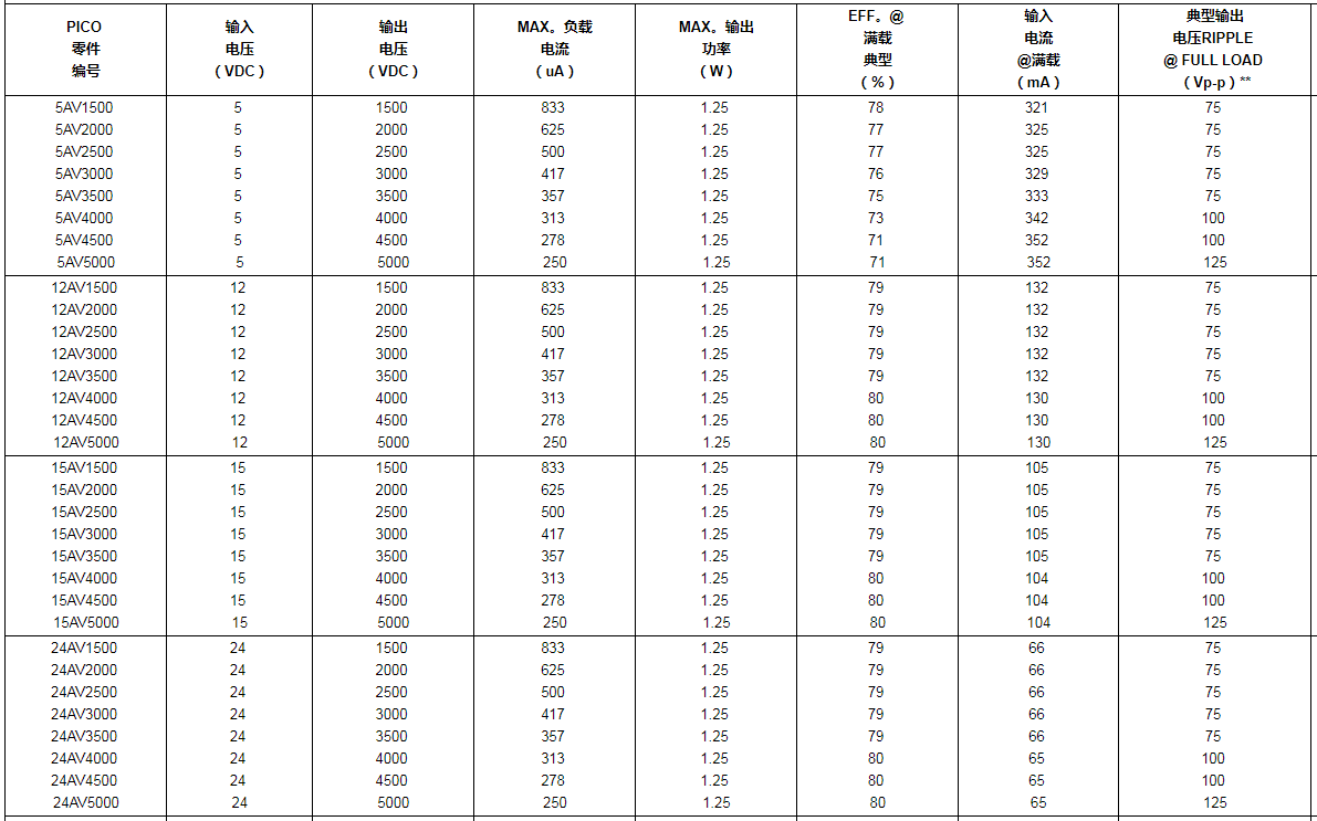 超微型進行高壓DC-DC電源線開關接口1500至5000VDC輸送——PICO電源線開關接口