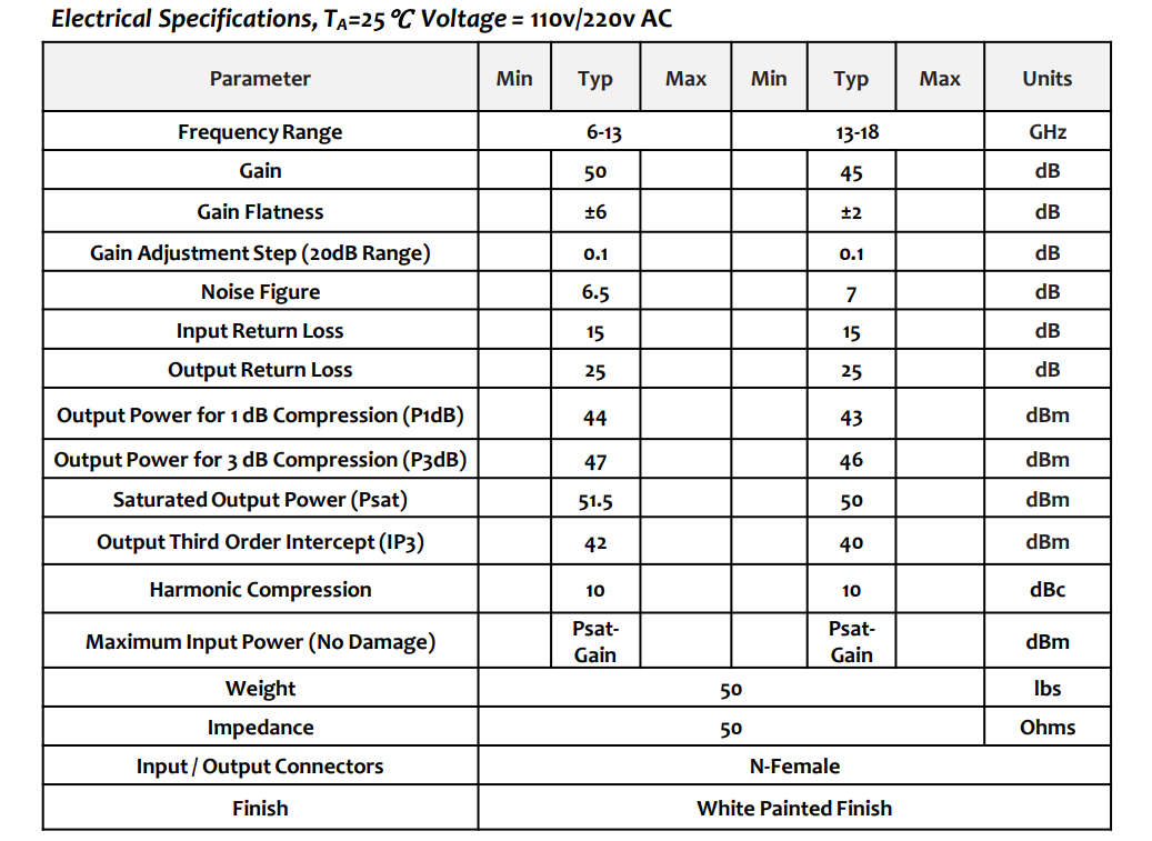 ·高飽和輸出功率50~52dBm。