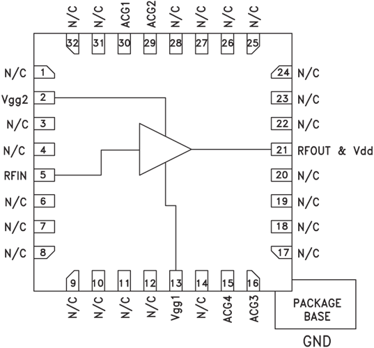 GaAs pHEMT MMIC 1W功耗放大器,DC - 6 GHz